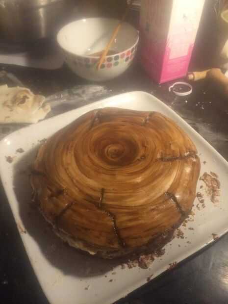 Mezclé un poco de gel marrón pasta alimentaria (yo uso colores Sugarflair) con vodka para pintar el árbol. Una vez más, ninguna idea acerca del uso de vodka pero que de lo que las reinas de pastillaje (fondant) diga que use por lo que hice! Comenzando en el centro de la torta, me imagino que se supone que utilice un lazy Susan/plato giratorio para girar tu pastel como usted deja su pincel pintar en un movimiento circular hacia fuera hacia el borde de la torta - no tengo ningún dispositivo de este tipo (deseo) así he pintado solo de libremente. Otra vez si tienes el dispositivo correcto creo que se ven muy bien!