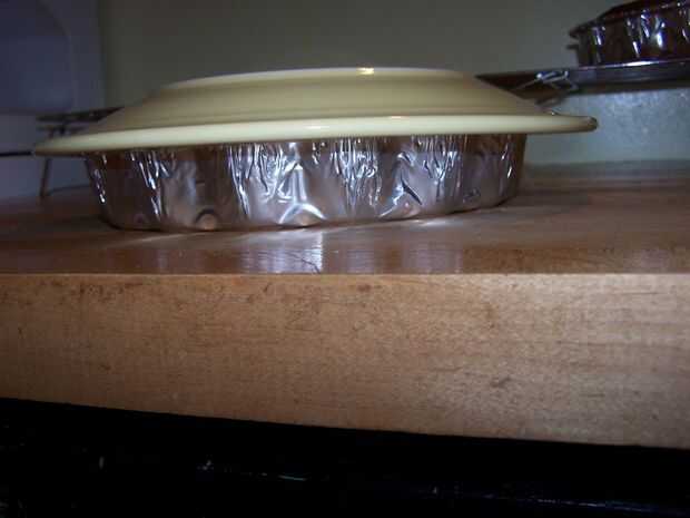 Quitar la torta por invertir un plato sobre el pastel y la placa de los bancos y pastel sobre. Quieren la parte inferior de la torta a la torta de servir, así que hacer esto otra vez con la torta de servir. Extender la parte superior de la torta con algunas conservas de frambuesa. Se derrite en.