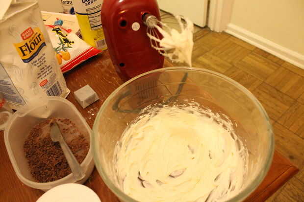A continuación, añadimos las virutas de chocolate que hicimos en el pastel para ocultar la superficie irregular de la crema de glaseado.