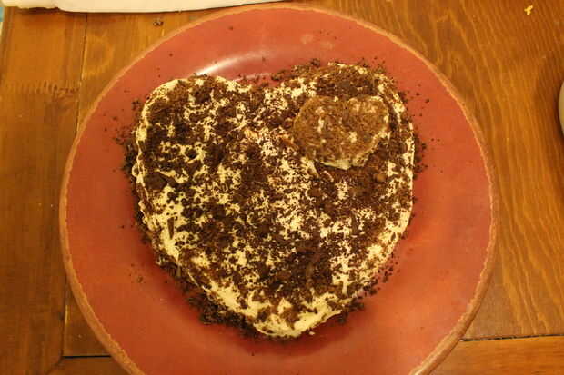 Coloque el pastel con crema en otra placa para mejor apariencia.
