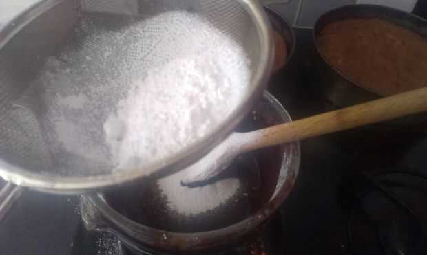 Luego usé mi batidora eléctrica para batir 200 g de glaseado de azúcar, esto provoca la formación de hielo endurecer. No tengo un batidor de mano, aunque creo que también funcionaría. Es importante que este proceso se hace rápidamente porque el chocolate empezará a establecer.