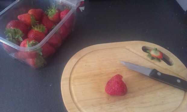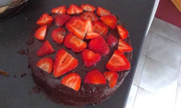 Me gusta el aspecto de mi torta hecha en casa no tengo una buena técnica para la aplicación de la fresa. He terminado mi tarta con una capa de glaseado de azúcar por un poco más dulce.