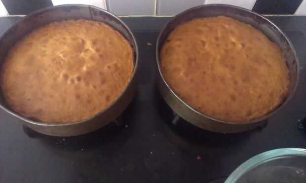 Mis pasteles toman generalmente entre 20 y 30 minutos para cocinar. El tiempo sus tortas también Cocinero puede ser diferente en diferentes hornos. Cuando tu pastel está listo debe ser bastante firme pero todavía spongey. Sólo debe abrir el horno para sacar el pastel porque el abrir y cerrar la puerta causan acometidas de aire que pueden causar huecos en tu pastel o que ser desinflado.