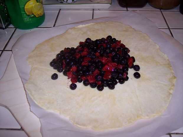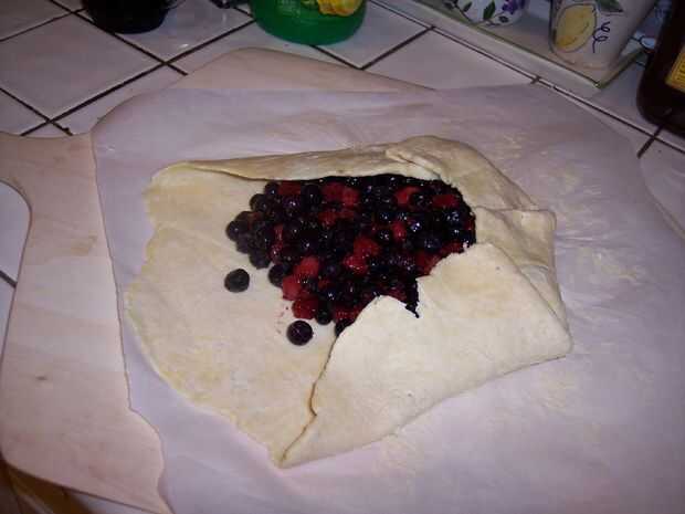 Para la tarta de arándanos, derramé la mezcla de la baya en el centro. Entonces doblé los lados en mitad de camino al centro, superposición y pellizcos cuando fui.