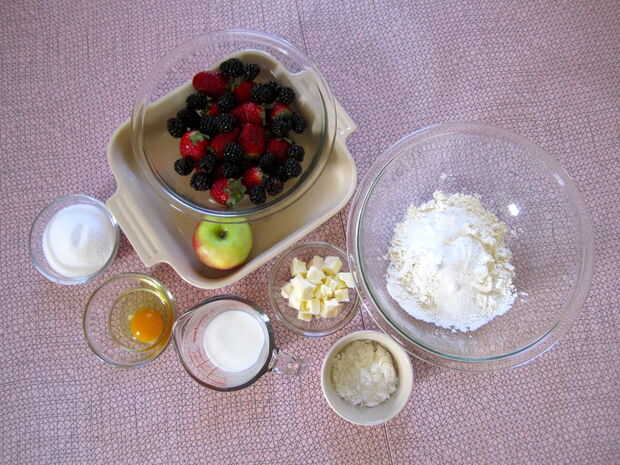 • 3-4 tazas de fruta picada (manzanas, ciruelas, peras, bayas de todo tipo)