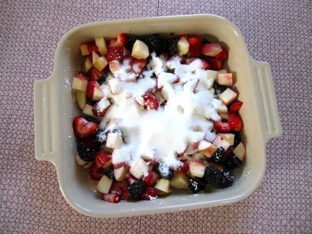 aquí es una manera fácil y fresca para hacer un pastel de frutas. Un gran pastel comienza con una buena corteza escamosa. Cuando tenga tiempo, hago desde cero. Hay muchas recetas por ahí, pero si no tienen tiempo o no has tenido suerte - utilizan una