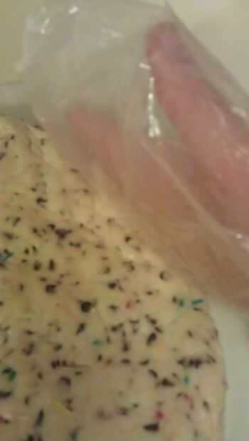 2. Gire la bolsa de plástico de la mezcla de la torta adentro hacia fuera para que cualquier polvo de mezcla de pastel está en el exterior. Coloque la bolsa en su mano y utilizar para la tarta de galletas de la forma en un círculo uniformemente espaciado.