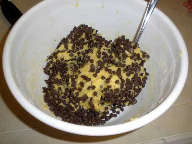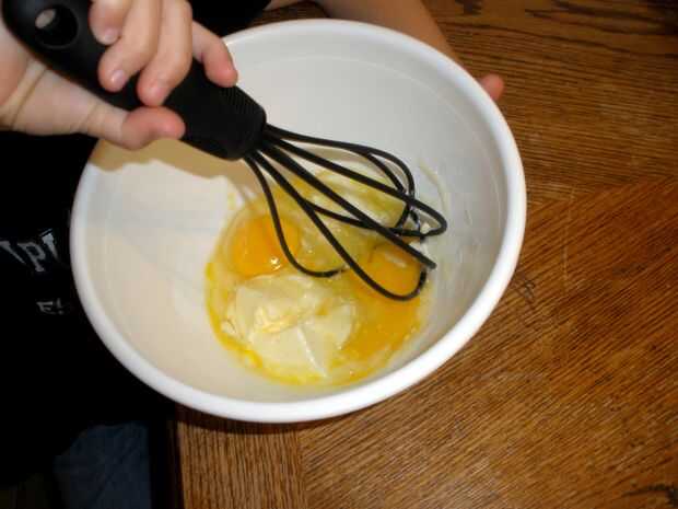 Mezclar la mezcla de la torta con la mezcla de huevo y mantequilla.