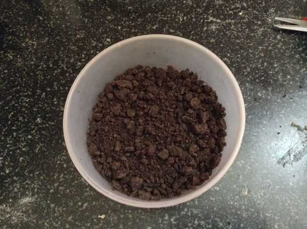Paso 1: ingredientes1 base de tarta de grahamchocolate con leche 7 oz.látigo de 1 1/2 tazas6 onzas de galletasPaso 2: Hervir 1/2 taza de látigo. Retire la llama y mezclar en el chocolatePaso 3: Batir 1 taza de cremaPaso 4: Moler las galletasPaso 5: c