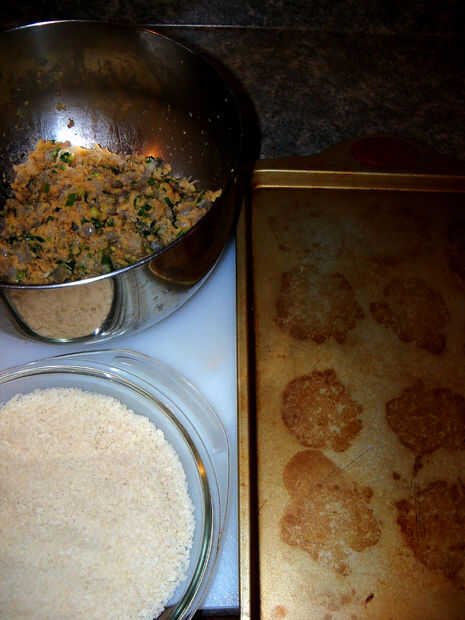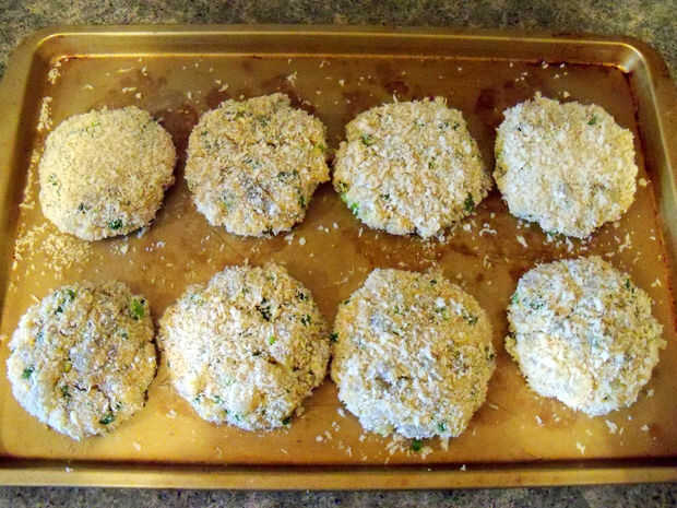 2. Cubrir ambos lados de la torta de camarón con la taza restante de migas de pan panko.