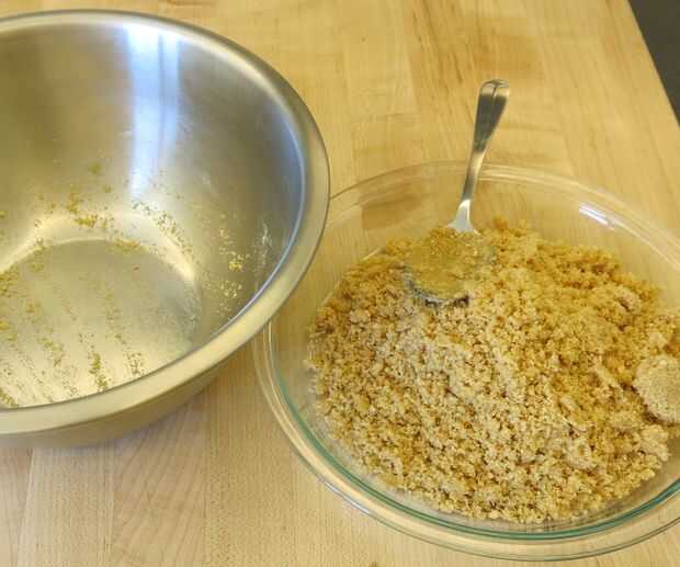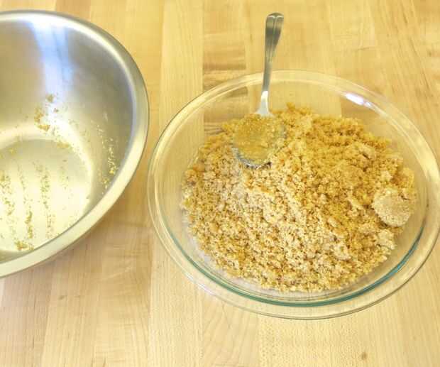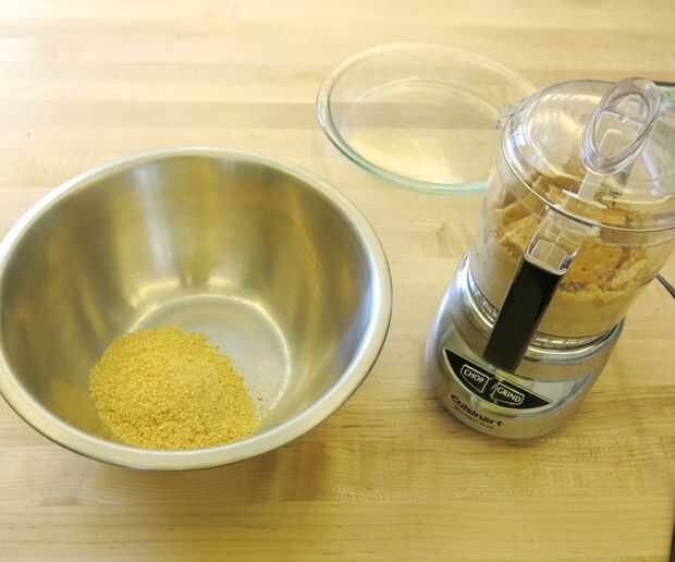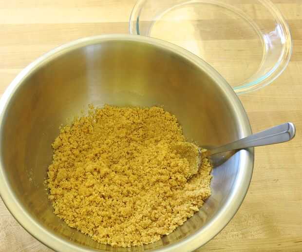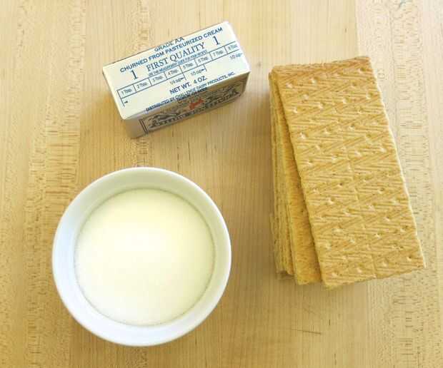 Utiliza un procesador de alimentos para moler encima de mis galletas pero lo puedes hacer a mano también. Así moler para arriba y mezclar con el azúcar y la mantequilla derretida. Yo siempre en el microondas mantequilla, porque eso es lo que hago. Pero usted puede venir a sala temporal por cuenta propia, si quieres, hasta que esté lo suficientemente suave como para usar.