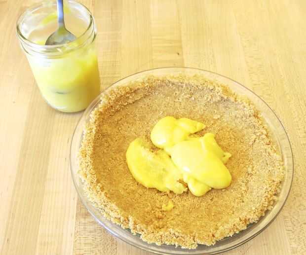 tarta de crema de limón con una costra de galletas azucaradas. Hace dos pies 5 pulgadas o una de 10 pulgadas.Azúcar tarta de Cooke (yo no soy un fan de cortezas de pasteles con pasteles de dulce, pero se puede sustituir uno aquí)1 barra de mantequill