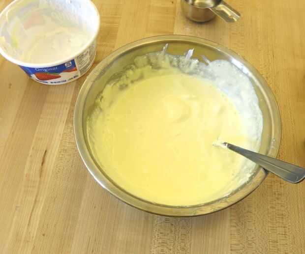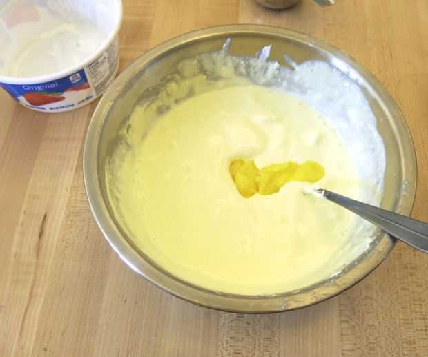 Disolver primero la gelatina que la ebullición del agua. Luego se mezclan en algunas de la agua fría para enfriarlo. Ahora mezcla todo el azote fresco. También lancé en una cucharada de crema de limón, pero no tienes que. No estoy seguro si hizo una diferencia o no, pero me gusta pensar que lo hizo aún mejor :)