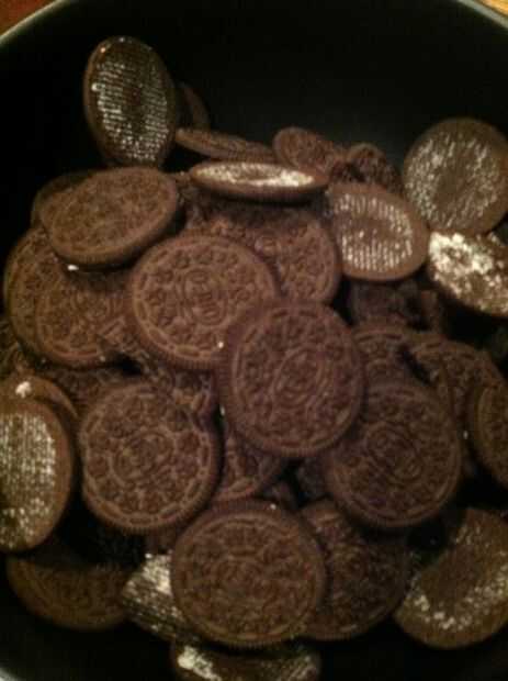 Quitar la crema de galletas Oreo con un cuchillo de mantequilla.