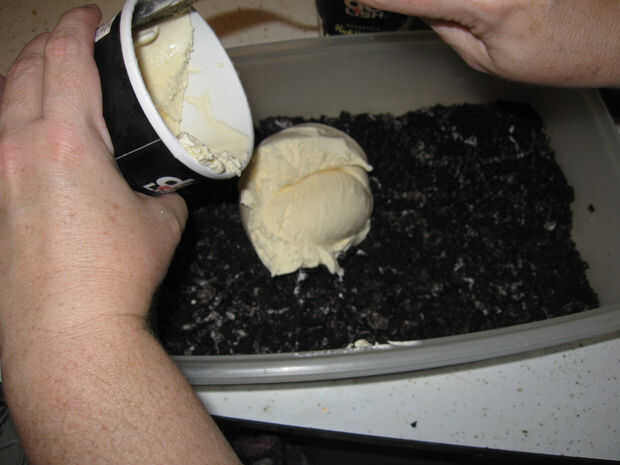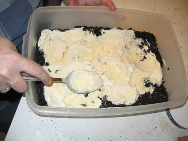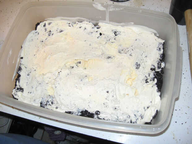 esta receta es para un pastel helado.  Recientemente, mi hijo de 15 años decidió que quería un pastel de helado.  Él escogió hacia fuera en la tienda y trajimos hogar.  Recuerdo pastel de helado con cariño como un niño, así que decidí yo corte una re