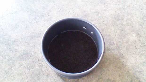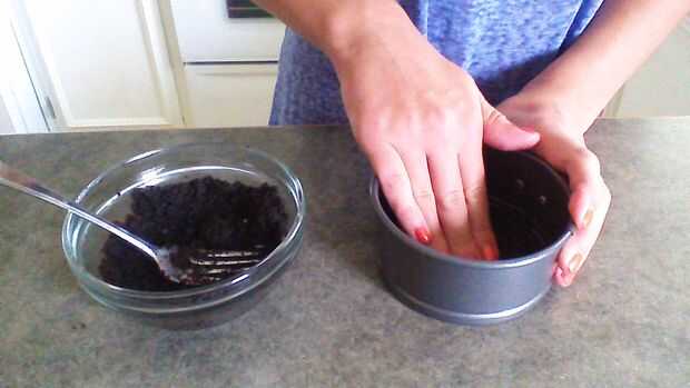 Para hacer la corteza, verter media taza de Oreo horneado las migas en un bol pequeño. Se combinan con 1 cucharada de mantequilla derretida. Ahora presione la mezcla firmemente en el fondo de su bandeja y ponerlo en el congelador durante 10-15 minutos.