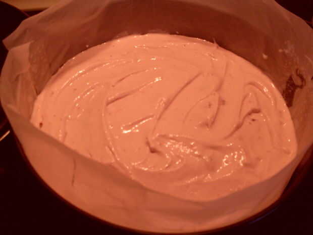 Ahora, de la vainilla, hacer exactamente lo mismo en cuanto a la fresa, sólo asegúrese de alisar la parte superior lo mejor que puede y obtener más plana posible para la torta.