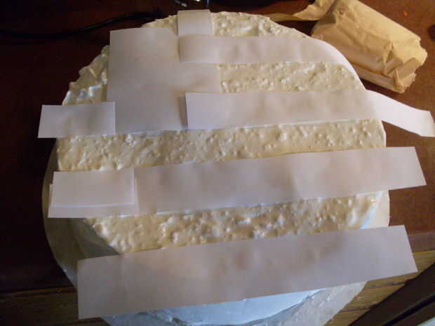 * Nota: al retirar los documentos, asegúrese de hacerlo para que los azúcares exceso caigan en las áreas aprobadas. Si se meten en el blanco, es aceptable. Puede simplemente volver sobre eso con un glaseado más después de su congelado otra vez.