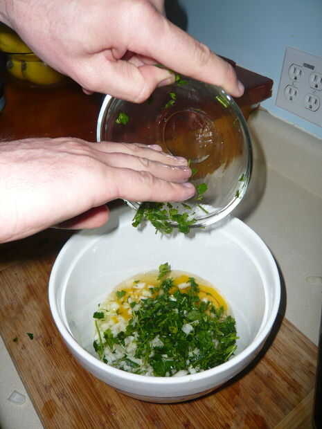 Picar la cebolla y el perejil.