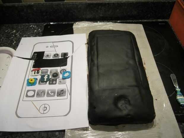 hice esta tarta para mi marido cumpleaños número 27.  Él es un fanático de la gran manzana y en el tiempo ambos tuvimos jailbreak iPhones en la red de TMobile... Así que hice esta tarta para replicar su teléfono.La fecha = su edad.Ni que decir tiene