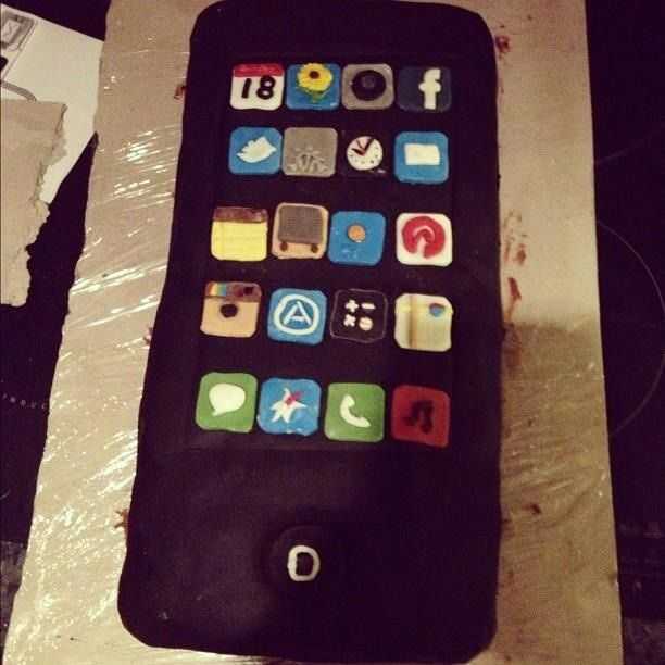 hice esta tarta para mi marido cumpleaños número 27.  Él es un fanático de la gran manzana y en el tiempo ambos tuvimos jailbreak iPhones en la red de TMobile... Así que hice esta tarta para replicar su teléfono.La fecha = su edad.Ni que decir tiene