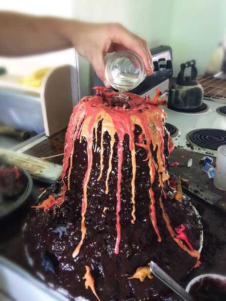 Vierta agua caliente a los trozos de hielo seco para realmente llegar a sublimar y hacer un volcán a la vida!