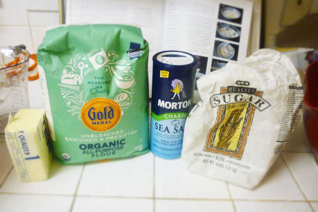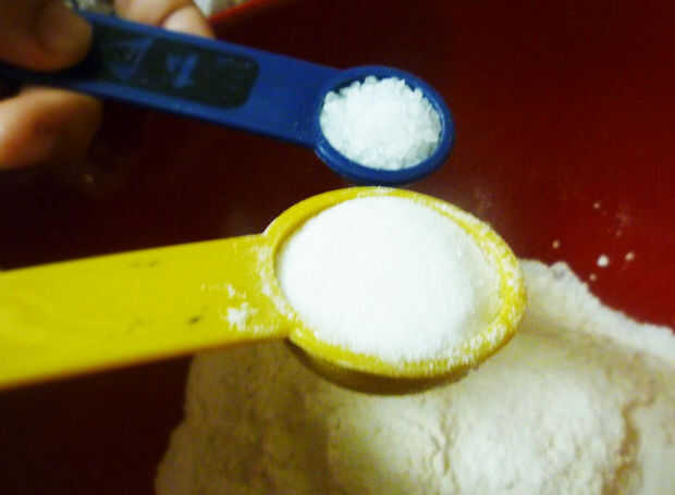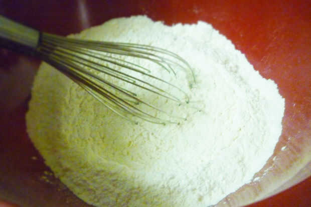 1. en un tazón grande bata la harina, la sal y el azúcar.