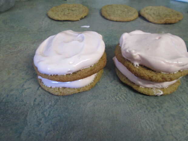 Lugar el Malvavisco cubierto medio pedazo encima de la pieza inferior y la cookie de malvaviscos en la parte superior.  Dejar reposar otra media hora.