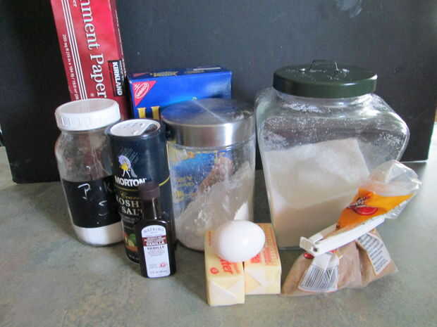 No mostrado: cuencos, cucharas, raspador de goma, horno, hornear, galletas turner y refrigeración racks, batidora de mano, cucharada de galleta.