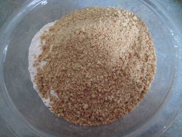 Precalienta el horno a 375°.  Combinado harina, migas de galletas graham, bicarbonato de sodio y sal en un bol.