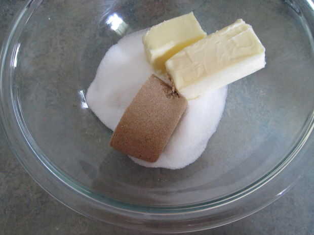 Usando la batidora de mano, batir el azúcar y la mantequilla juntos,