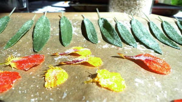 Además de ser un increíble ceramista, Alessandra es una cocinera fantástica. Steve y Alessandra son, de hecho tienen un enfoque de equipo de etiqueta único para preparar comidas. Ella hace toda la planificación del menú y fuentes del alimento entonces él pone sus ideas (lo cocina) por último, detalla la placa. El resultado es siempre espectacular y delicioso. Alessandra es un genio con guarniciones tenía un motivo oculto para llevar la tarta a su casa. Necesitaba algunas ideas estéticas para mejorar la presentación. Su primer comentario cuando salí con mi pie (literalmente) la mitad al horno fue "parece que tienes que trabajar sobre el recurso de la acera" lanzó ideas alrededor y surgió con confitado salvia y Capuchinas como guarnición. Por suerte, tenían en su jardín (sí, ella es un gran jardinero también!) y el Internet supieron dulces flores.