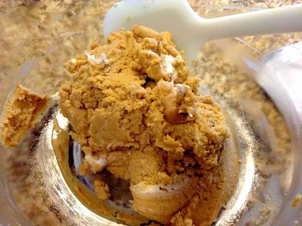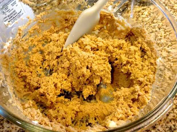 Batir juntos la mantequilla de maní y el queso crema hasta que esté suave. Apague la batidora, raspa los lados del tazón de fuente.