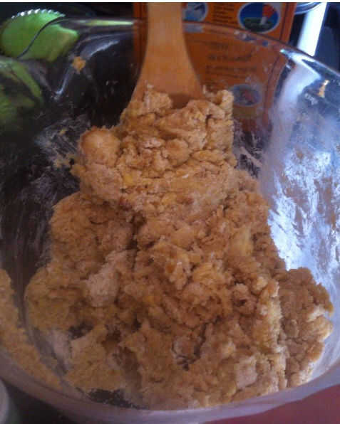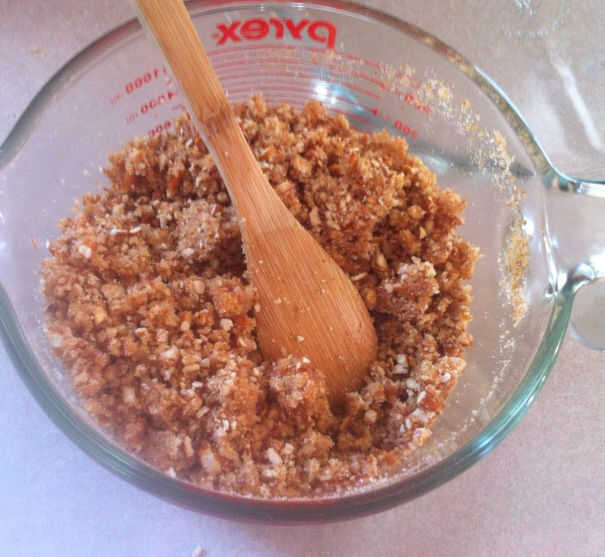 2. Una vez que se machacan, añadir la mantequilla derretida y el azúcar y mezclar bien.