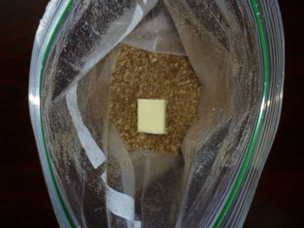 3. Mezcle el cereal machacado y mantequilla derretida en el ziplock hasta que las partículas están cubiertas