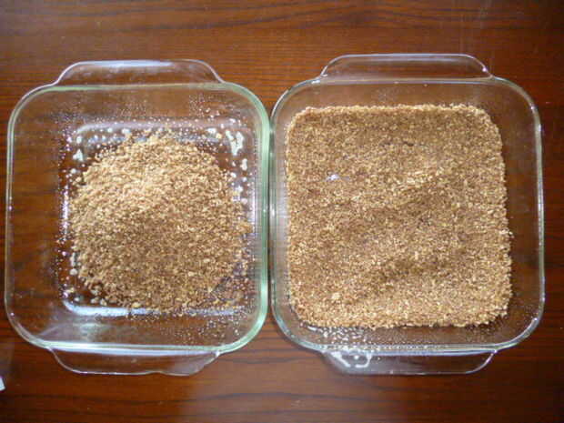 4. Esparcir la mezcla de cereales o mantequilla en una 9 x 13 plato o dos 8 x 8 bandejas (para mantener para usted!) y dejar de lado
