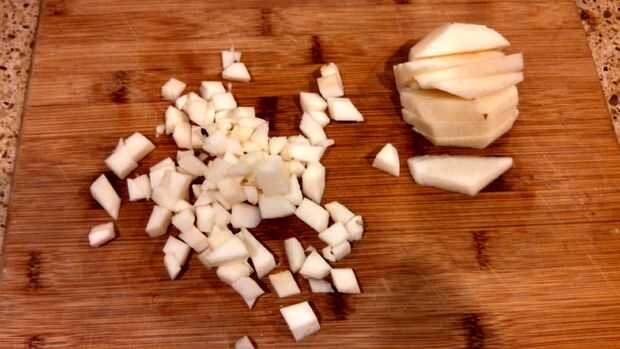 Me gusta mina con jugosos trozos de manzana, así que pique las manzanas en el lado grueso (1/4 de pulgada en cuadritos) pero que hace que el pastel de carne ser un poco grumosa. Si usted tritura las manzanas, o picarlas finamente, el pan mantiene un poco mejor. Depende de usted. También, manzanas ralladas ocupan menos espacio que las manzanas picadas gruesas, por lo que podría utilizar un poco menos de 2 tazas si usted tritúrelos.