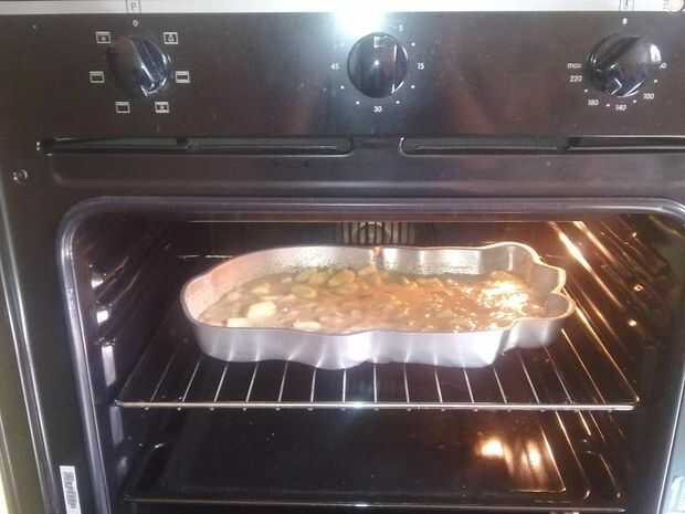 Poner la masa en el sello. Poner en el horno, yo no precalentar el horno porque en el momento de obtener la temperatura adecuada la masa subirá. :)