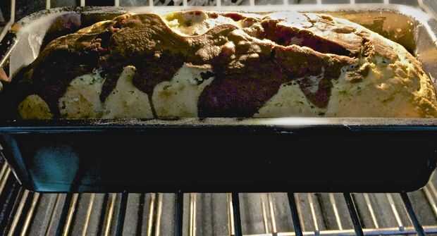 Hornear el pastel durante 75 a 85 minutos o hasta que un probador insertado en el centro salga limpio. Girar el pastel a unos 40 minutos en cocción, gire alrededor de