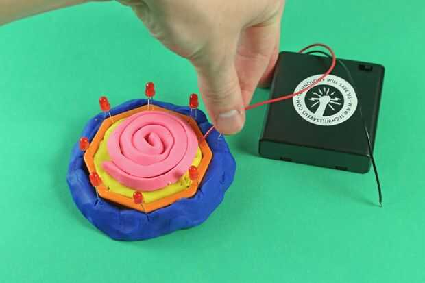 Para iluminar tu pastel, agregar el paquete de batería al circuito.