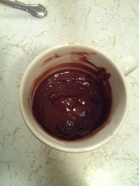 esto es delicioso! No tiene esa textura horrible esponjosa que encuentra en pasteles de taza más últimamente. Este es esponjosa y elástica al tacto.Ingredientes:1/4 taza Nutella1/4 taza de harina3 leche de T1/4 de cucharadita de polvo de hornearPaso
