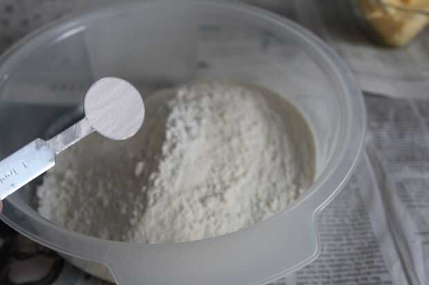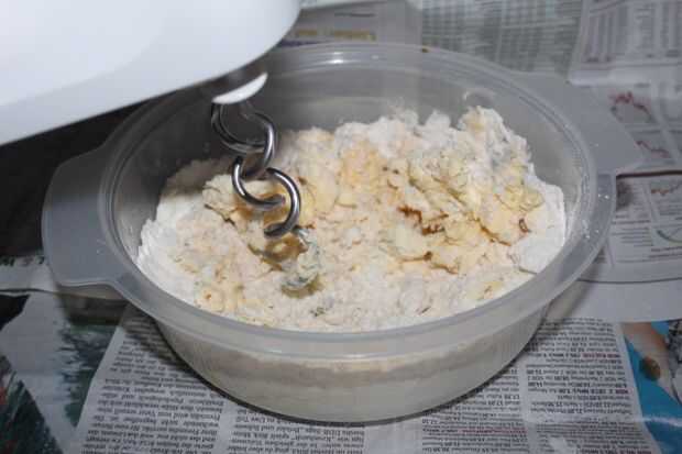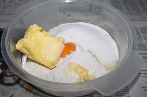 Para hacer la masa tamizar la harina y el polvo de hornear en un tazón y agregue los otros ingredientes. Revolver con una batidora con gancho de amasar. En primer lugar brevemente con el ajuste más bajo y luego en la posición más alta hasta que se forme la masa. Luego rodar en una bola con la mano. Envolver la masa en film transparente y refrigerar hasta que se necesite.
