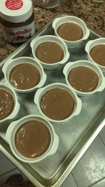 4 - Añadir la mezcla a la taza de la torta de lava luego la Nutella en el centro de cada uno.