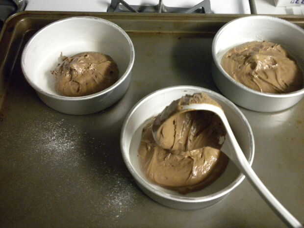 Igualmente la porción entre 3 6" alrededor de moldes. Hornee a 350 grados durante 27-30 minutos. Tortas se realizan cuando un palillo salga casi limpio - no sobre-cuece al horno o saldrá seco!