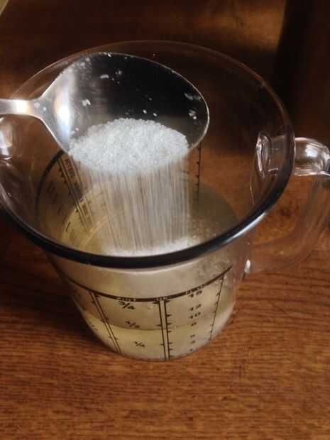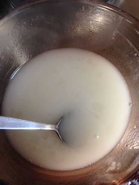 Mezclar el arrurruz con un poco de jugo, mezcle en el resto del jugo. Agregue el azúcar a hervir y cocinar a fuego lento durante un minuto hasta que esté ligeramente espesa y clara.