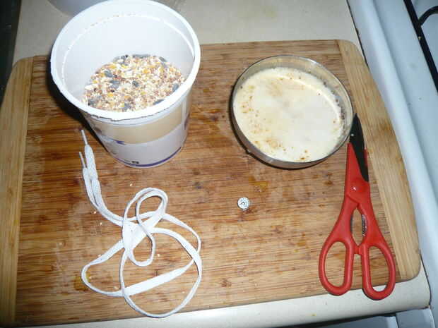 Alimentador del pájaro del pastel... Herramientas y materiales