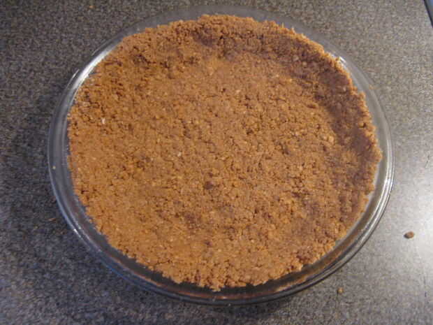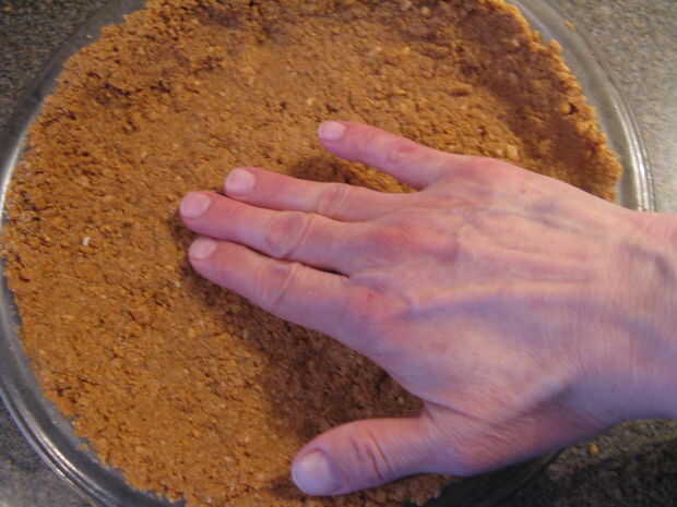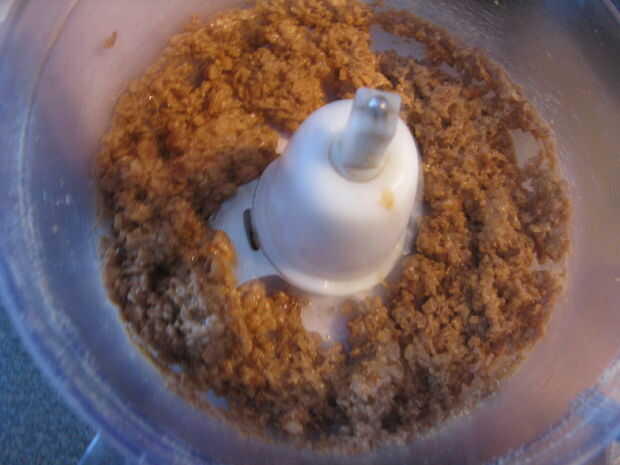 3. Añadir el azúcar, mantequilla de cacahuete, mantequilla derretida y las migas de graham en procesador de alimentos y mezcle hasta que la cubierta de forma uniforme y se aferra juntos (usted puede también hacer esto a mano si no tienes un procesador de alimentos)