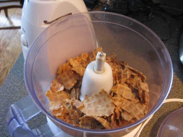 2. a continuación parte de la punta no se romperá en pedazos y colocar en el procesador de alimentos. Si no tienes un procesador de alimentos, luego ponerlos en un cierre de cremallera plástico y rodillo encima de la bolsa con un rodillo o utilice un martillo para romperlos.