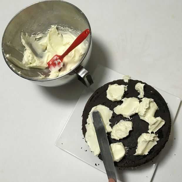 2. en vez de poner un pegote enorme de glaseado en el pastel y alisar hacia fuera, distribuir pequeñas matas sobre él y lisa hacia fuera.
