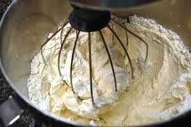 Pesados de lugar 1 taza crema para batir en una ensaladera o tazón de la batidora de pie. Supera en medio hasta que la crema se vuelve espumosa. Batir continuamente hasta que la crema comience a espesar, batir lentamente en extracto de coco y azúcar. Al final justo antes de forma picos rígidos, agregar copos de coco adicional si lo desea.